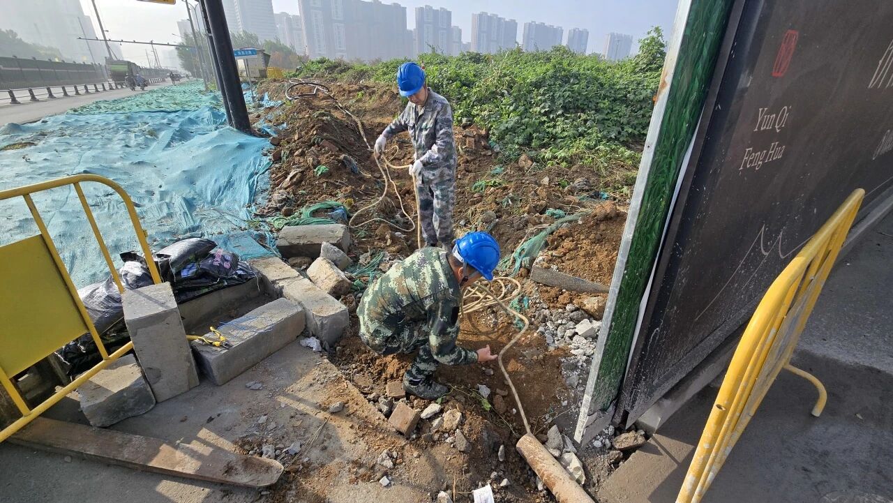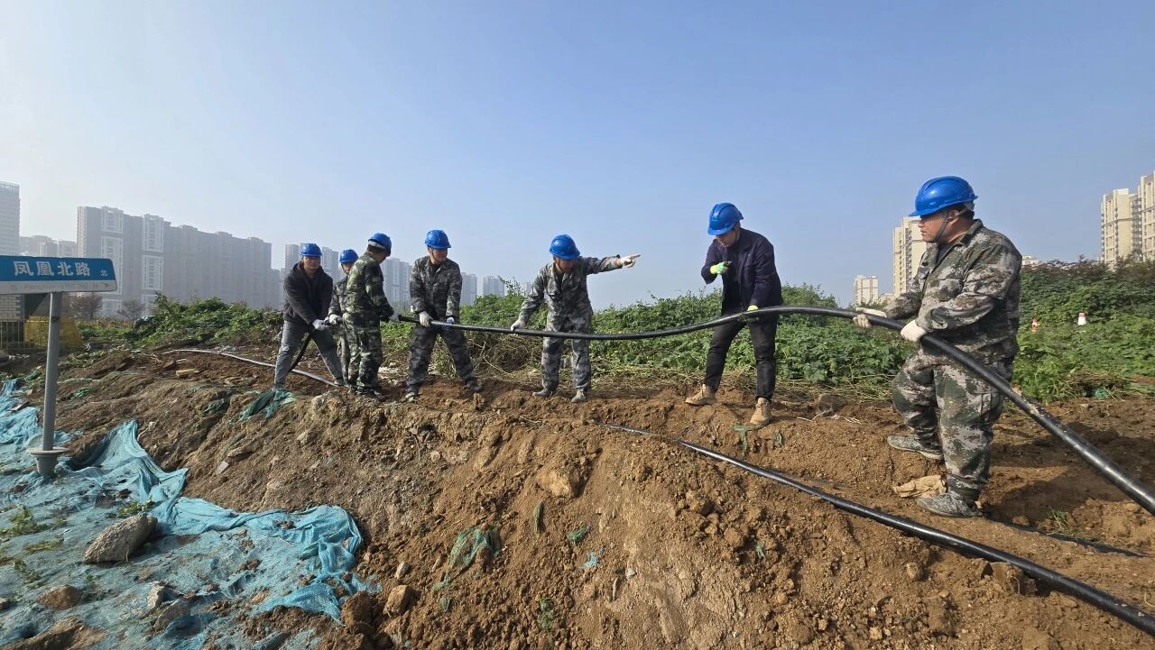 ? ? ? ?遷建工程施工區域鄰近主路,面對臨時用電搭建與打井電纜應急敷設工作需過路施工且地下管線密集的困難,還要兼顧后續的施工便利性與用電安全性。項目部抽調12名黨員技術骨干組建先鋒小組,聚焦工程建設用電難點痛點開展專項攻堅。